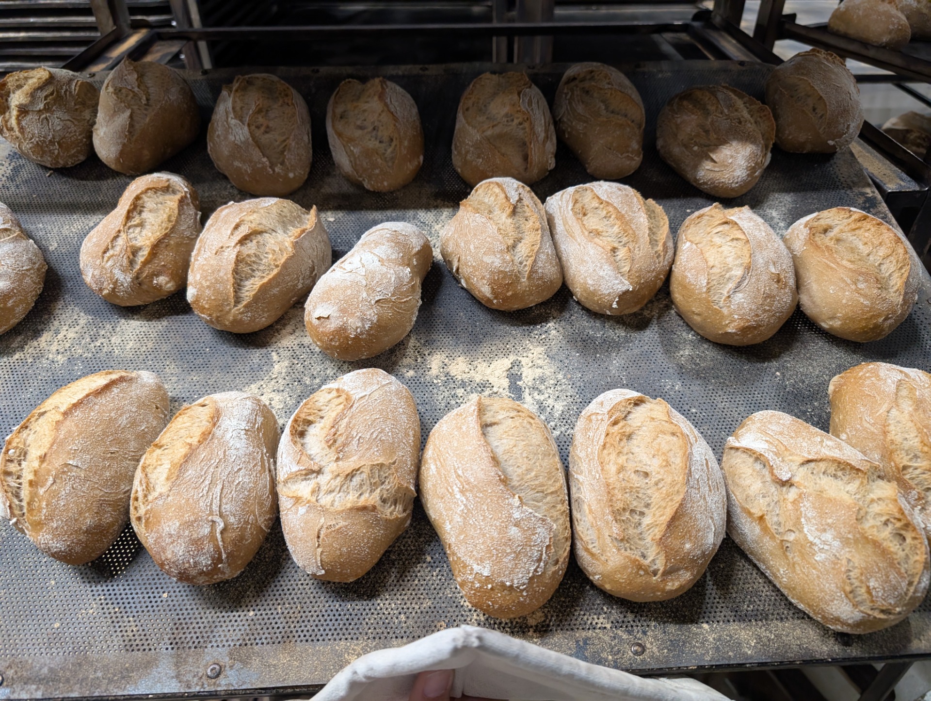 Com o crescimento da atividade, expandimos a nossa presença no Centro Comercial e investimos em novas instalações. Passámos então a confecionar o pão na nossa fábrica no piso inferior, mantendo uma ligação direta ao balcão: assim que sai do forno, o pão é transportado internamente e chega de imediato aos nossos clientes.